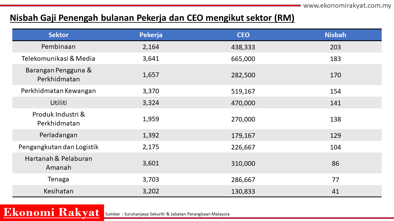Ekonomi Rakyat On Twitter Jurang Terbesar Gaji Ceo Dan Pekerja Di Malaysia Terletak Di Sektor Pembinaan Gaji Penengah Pekerja Hanya Rm2 164 Sebulan Manakala Bagi Ceo Gaji Penengah Mereka Adalah Sebanyak Rm438 333 Sebulan